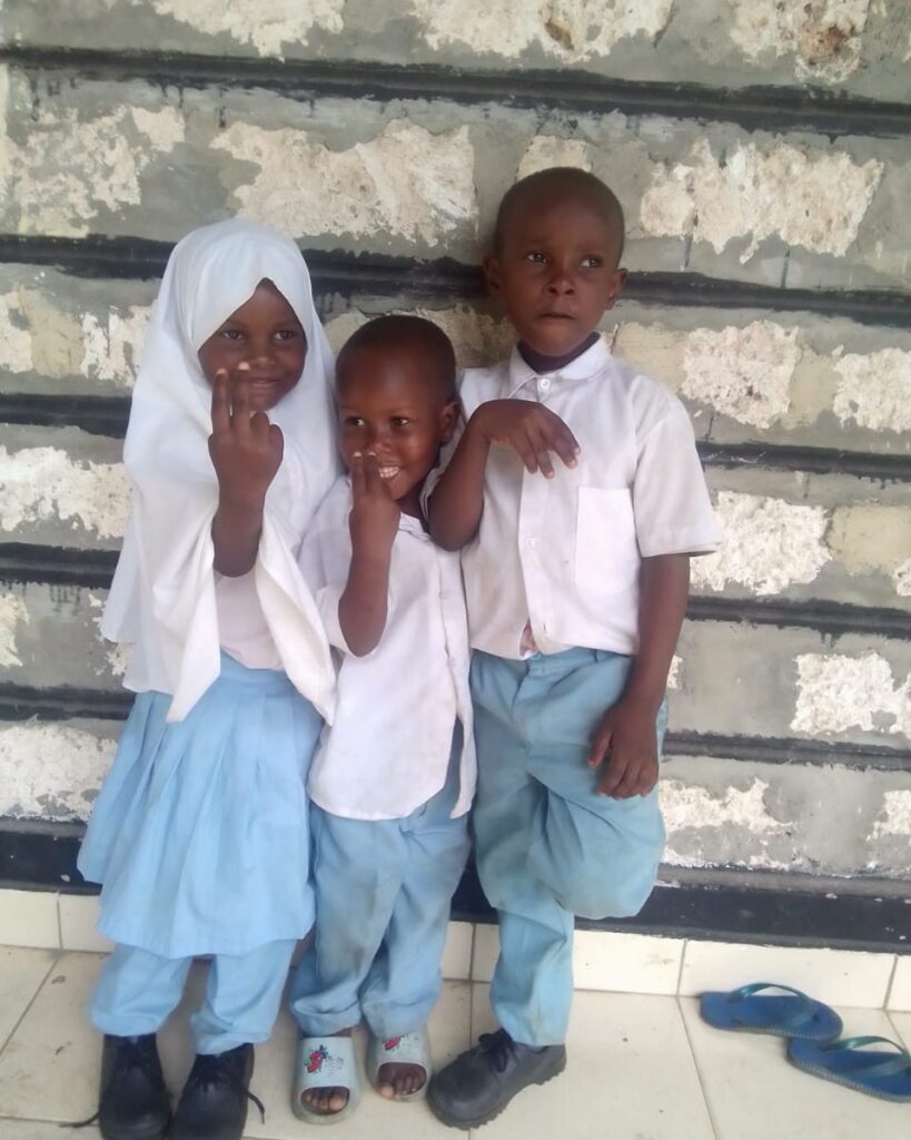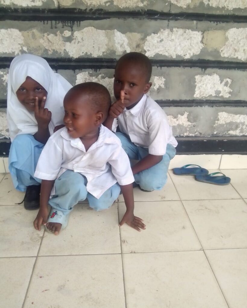 En creusant nous nous sommes aperçus qu’elle n’avait pas les moyens de les scolariser. L’école primaire n’est en fait pas totalement gratuite puisqu’il faut débourser 8€ par enfant pour l’achat d’un uniforme, 4€ pour des cahiers et 4€ pour l’admission, et cette maman de 4 enfants, Amina, sortant d’une maladie longue, seule (son mari l’a abandonnée lorsqu’elle a rencontré des problèmes de santé et l’a laissée avec ses 4 enfants pour partir en Tanzanie avec une autre femme), n’arrive même pas à payer ces frais pour scolariser ses 3 plus jeunes enfants.
