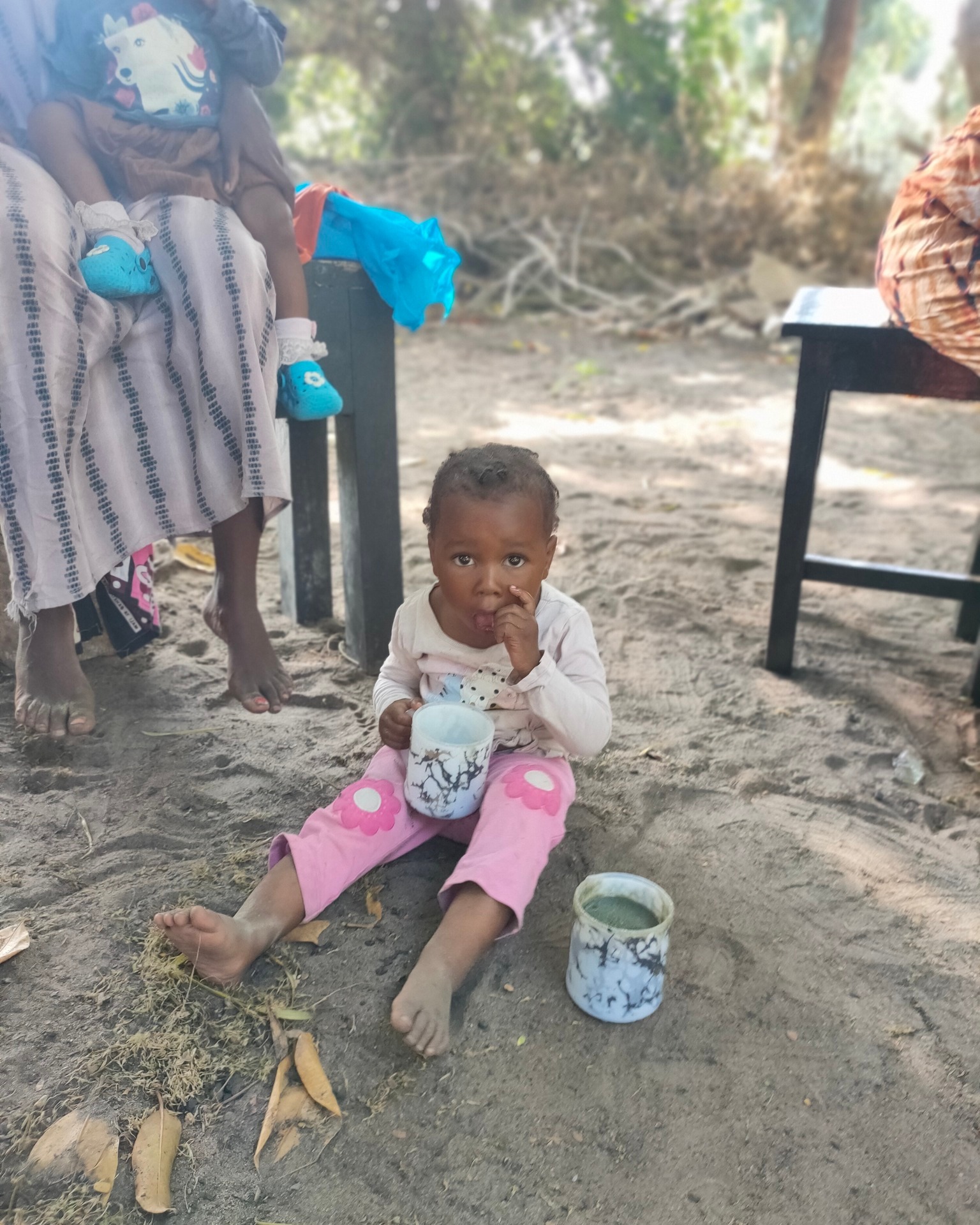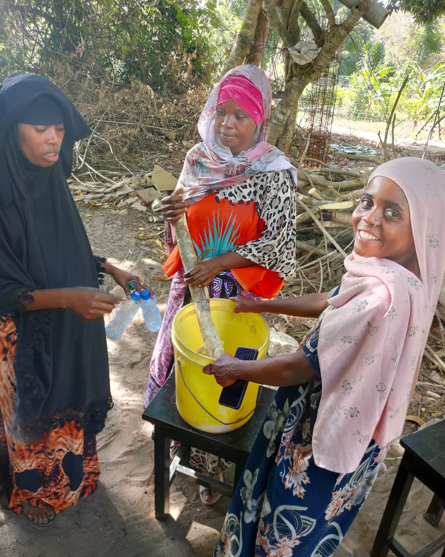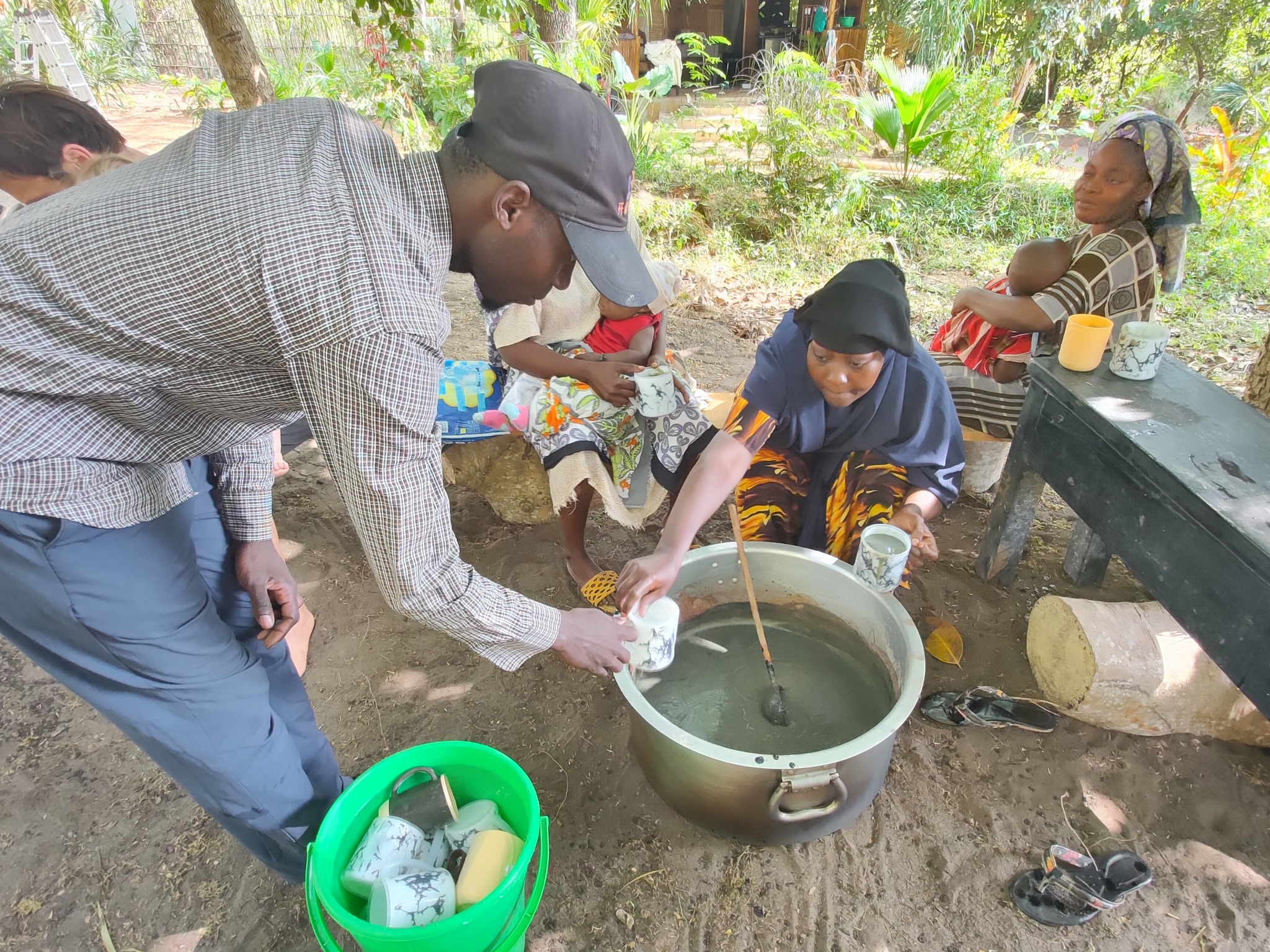 Mohamed et Omar, ayant bénéficié du programme de parrainage il y a qq années, et ayant pu poursuivre des études secondaires (en santé communautaire) grâce à 2 généreux donateurs de notre entourage, se sont lancés bénévolement il y a qq mois sur un projet intéressant. En partenariat avec le dispensaire du village, ils ont ciblé une quinzaine de mamans d’enfants malnutris et leur proposent un suivi hebdomadaire avec élaboration d’un porridge à base de spiruline (et fourniture d’une dose hebdomadaire de céréales et spiruline à emporter à la maison), sensibilisation à la nutrition et fabrication de liquide vaisselle pour générer un petit revenu.
